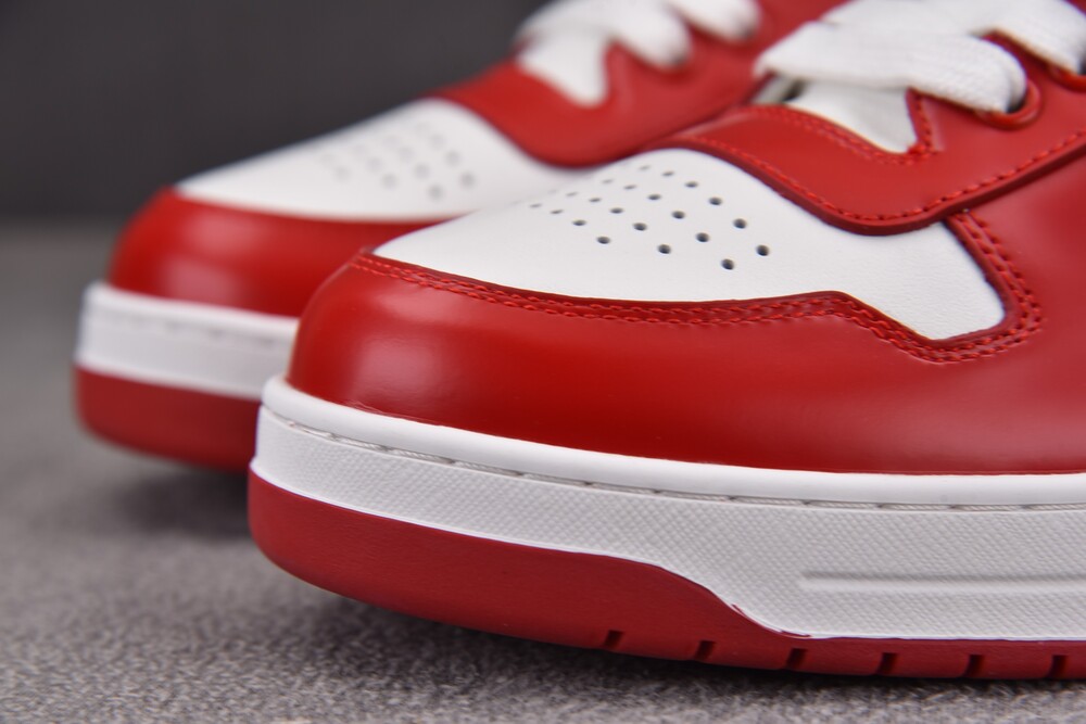 Prada Downtown Leather Sneakers White Lacquer Red
